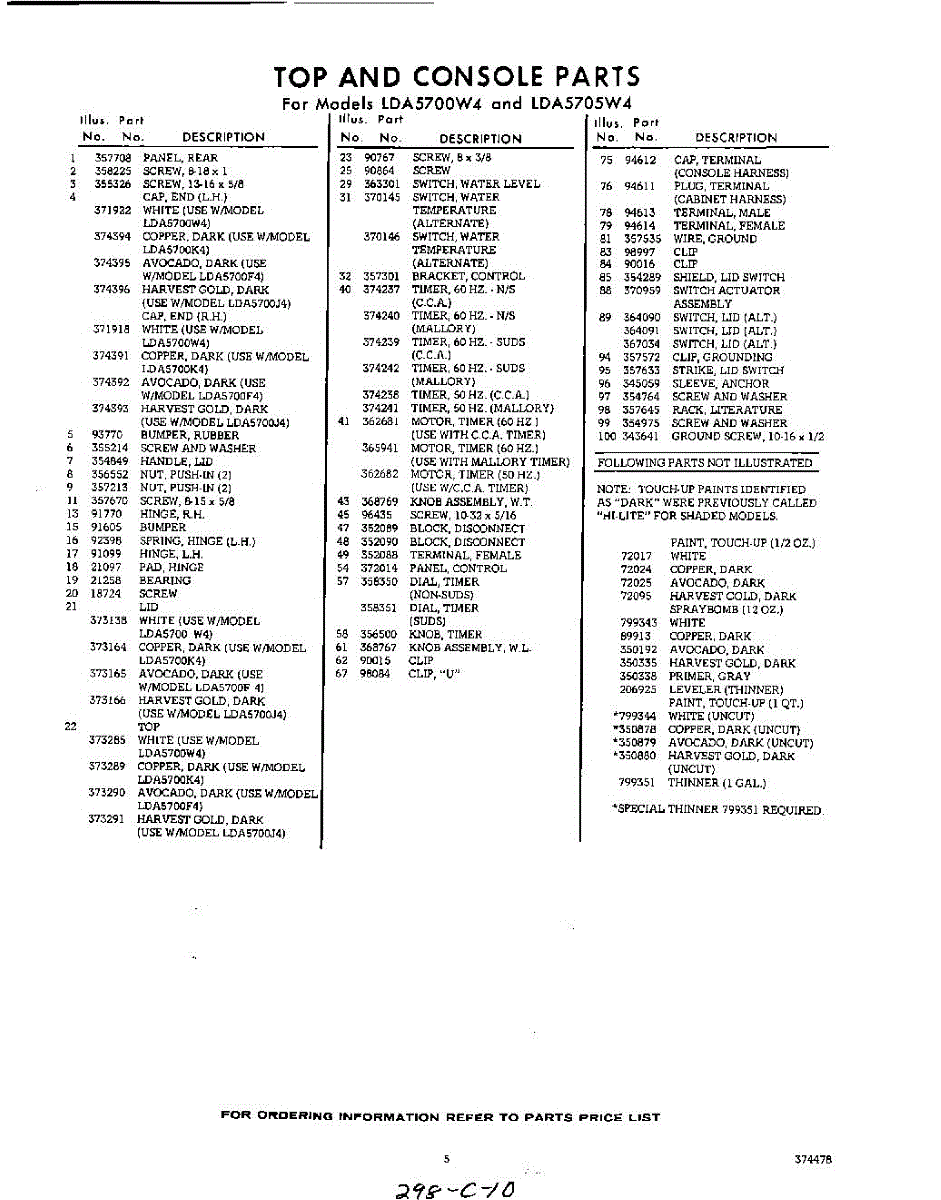 Parts for Whirlpool LDA5700W4: 05 - Section Parts