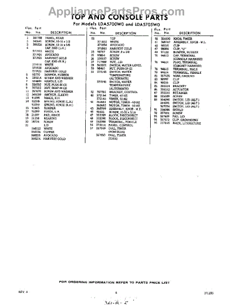Parts for Whirlpool LDA5705W0: 05 - Section Parts