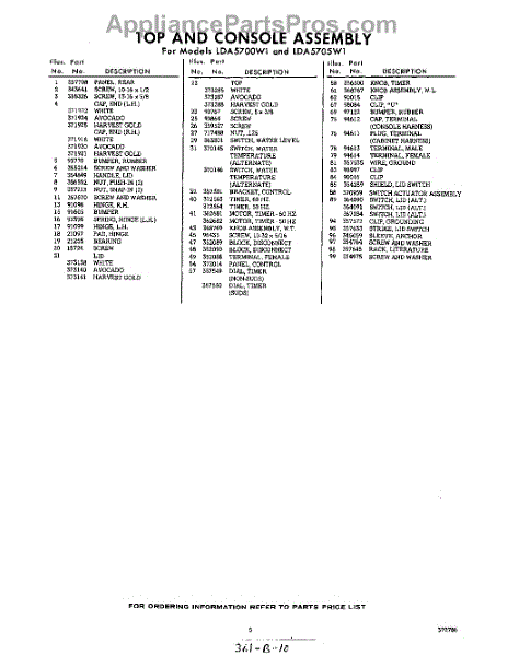 Parts for Whirlpool LDA5705W1: 05 - Section Parts