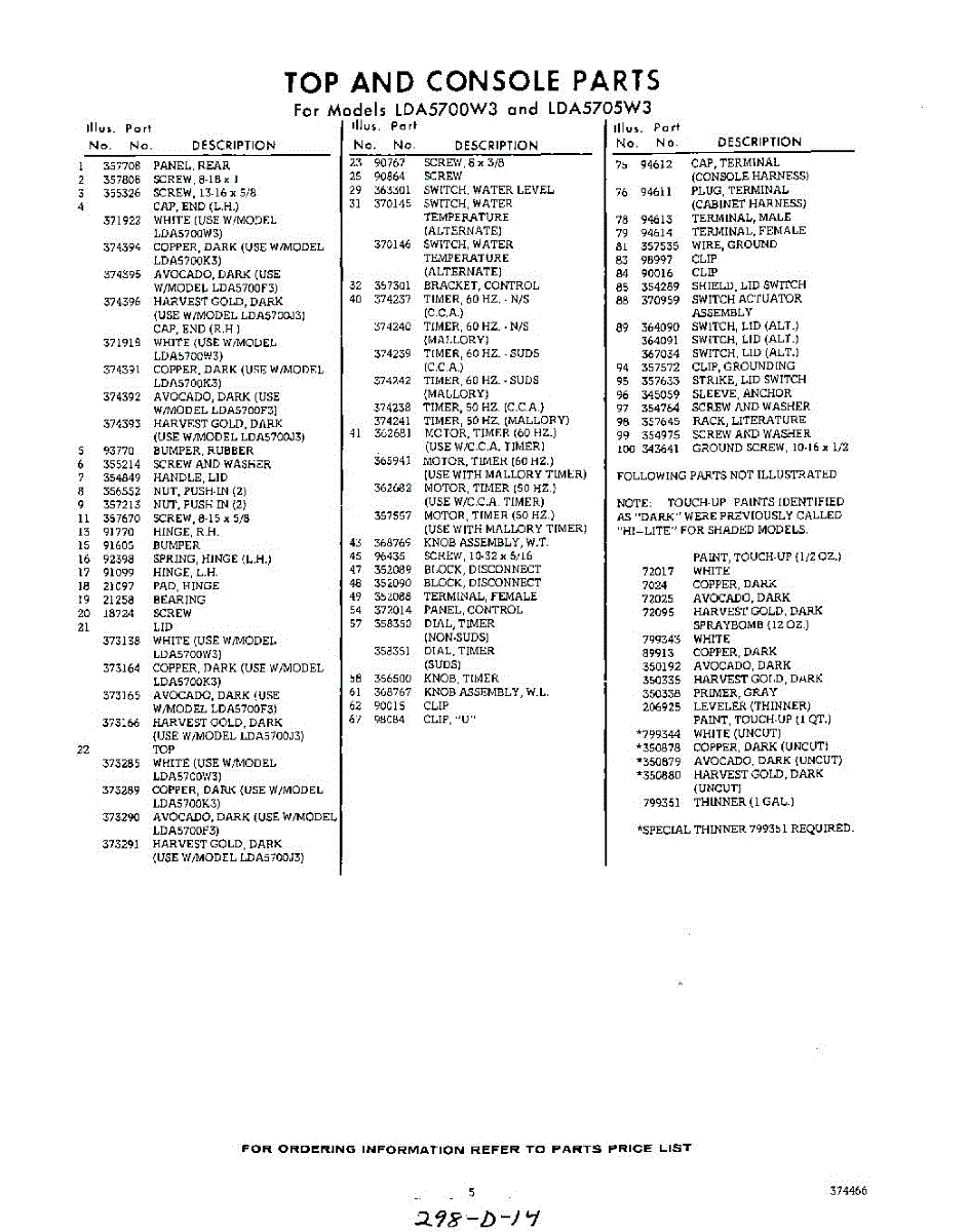Parts for Whirlpool LDA5705W3: 05 - Section Parts