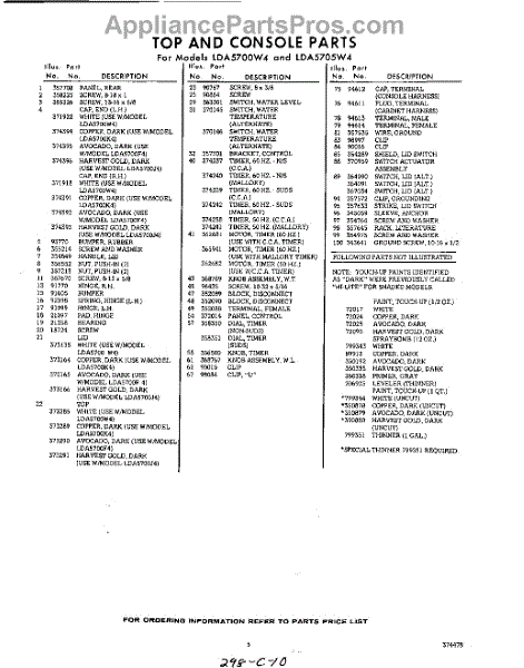 Parts for Whirlpool LDA5705W4: 05 - Section Parts