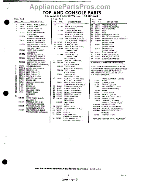 Parts for Whirlpool LDA5805W4: 05 - Section Parts