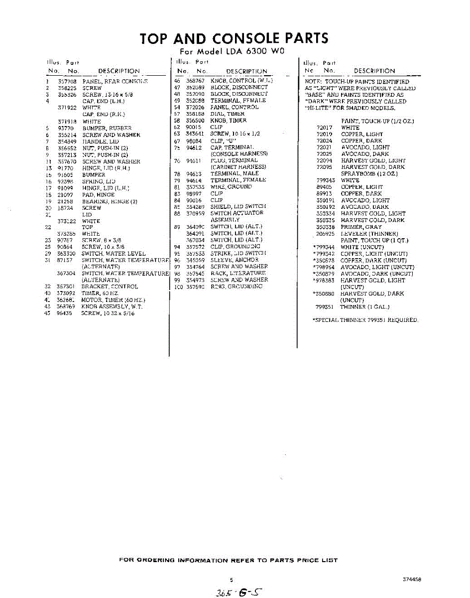 Parts for Whirlpool LDA6300W0: 05 - Section Parts