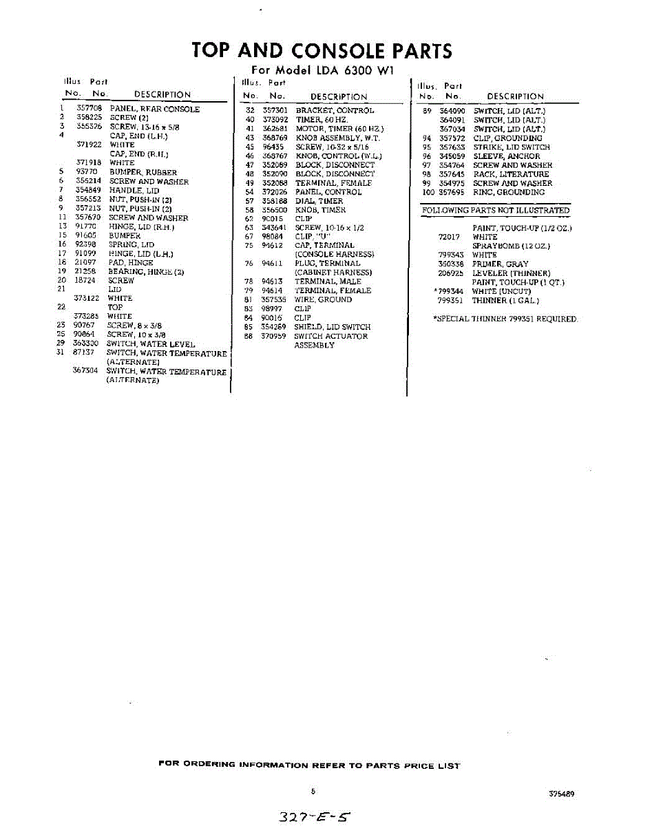 Parts for Whirlpool LDA6300W1: 05 - Section Parts
