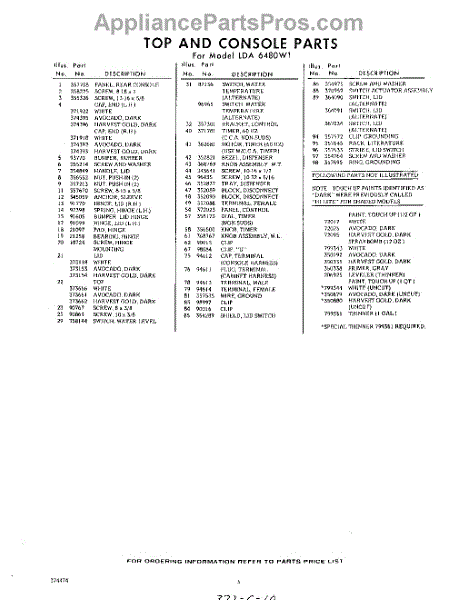 Parts for Whirlpool LDA6480W1: 05 - Section Parts