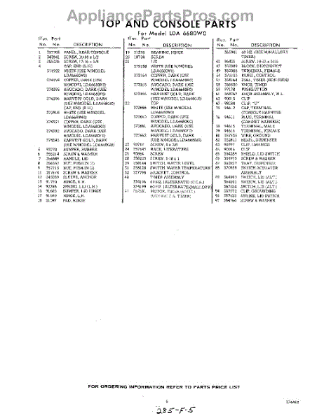 Parts for Whirlpool LDA6680W0: 05 - Section Parts
