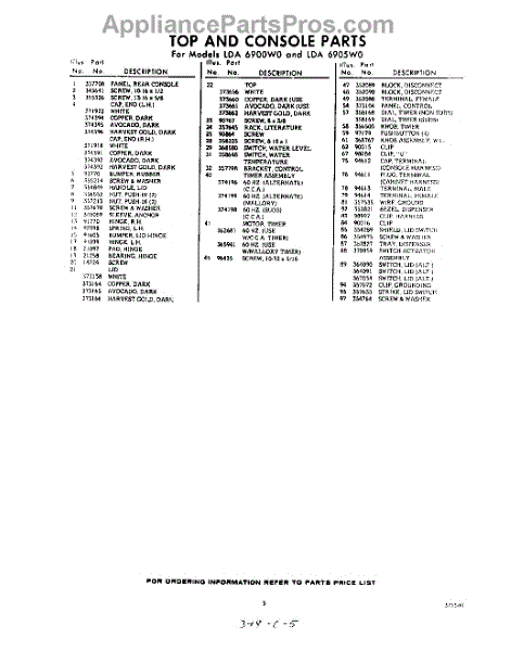 Parts for Whirlpool LDA6900W0: 05 - Section Parts