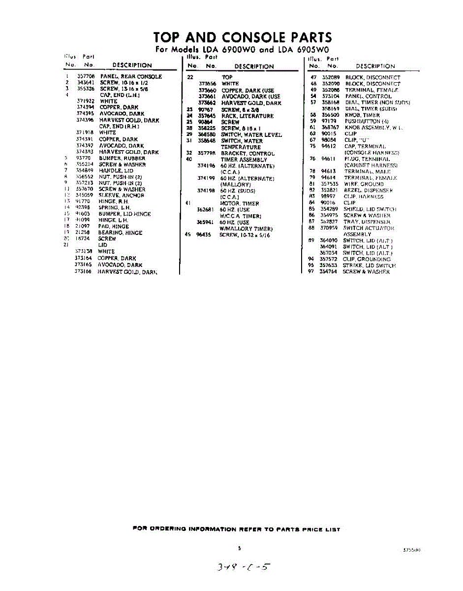 Parts for Whirlpool LDA6905W0: 05 - Section Parts