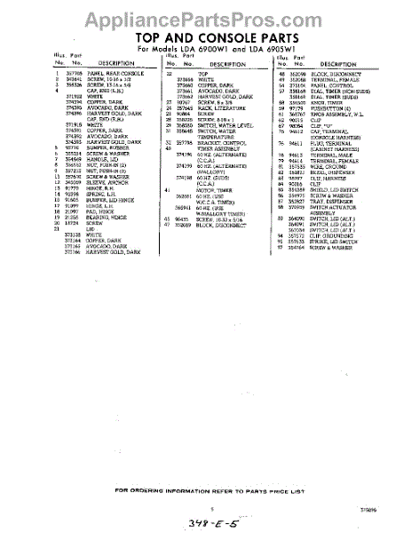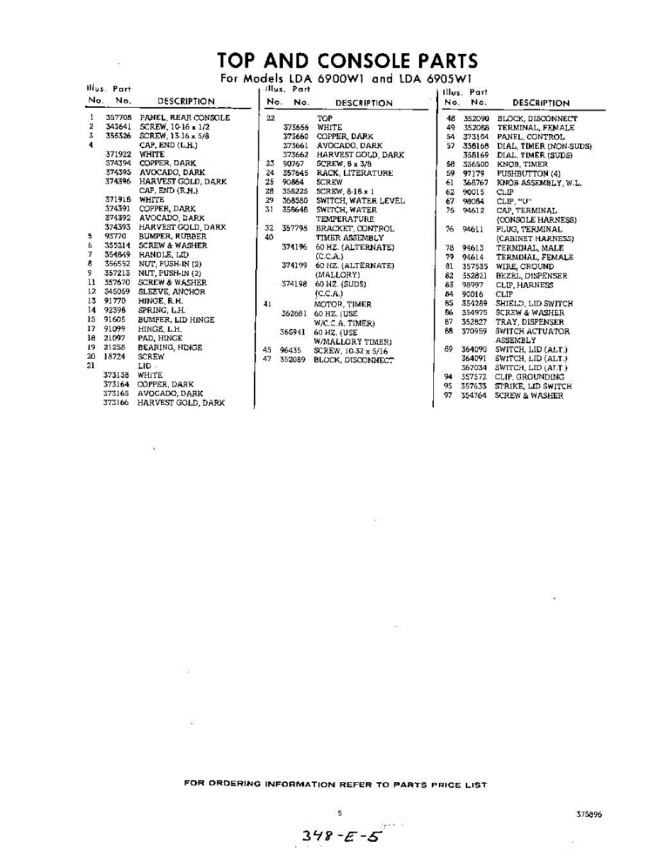 Parts for Whirlpool LDA6905W1: 05 - Section Parts