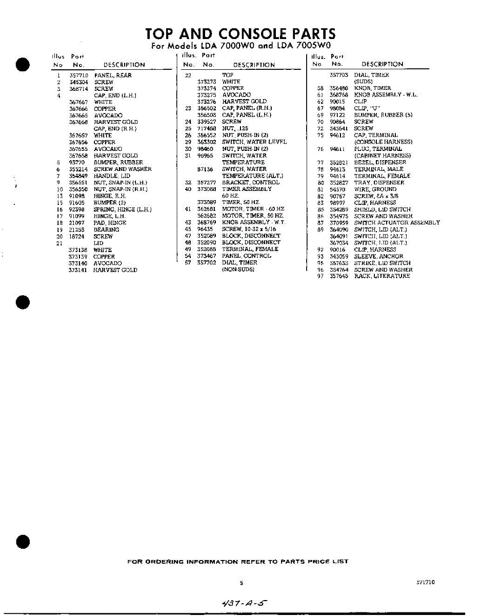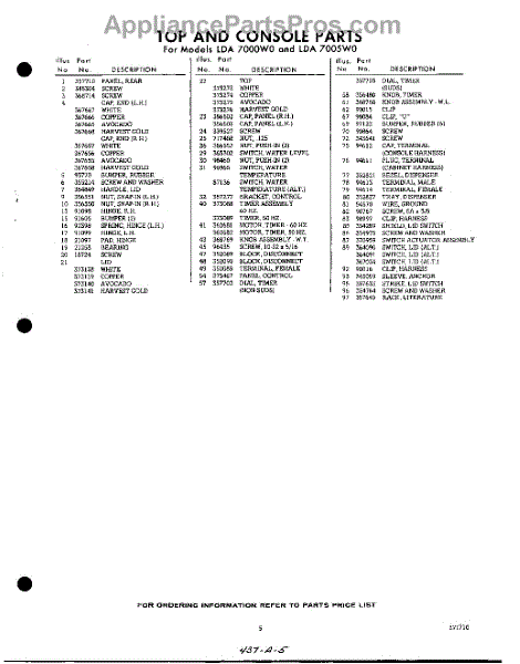 Parts for Whirlpool LDA7000W0: 05 - Section Parts