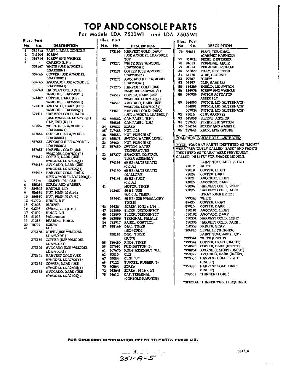 Parts for Whirlpool LDA7500W1: 05 - Section Parts