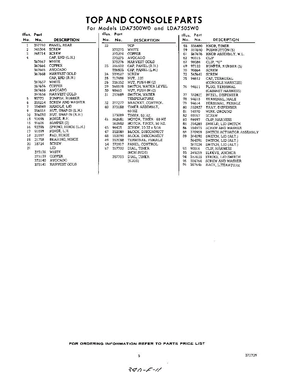 Parts for Whirlpool LDA7505W0: 05 - Section Parts