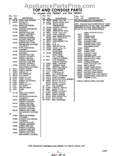 Parts for Whirlpool LDA7600W1: 05 - Section Parts