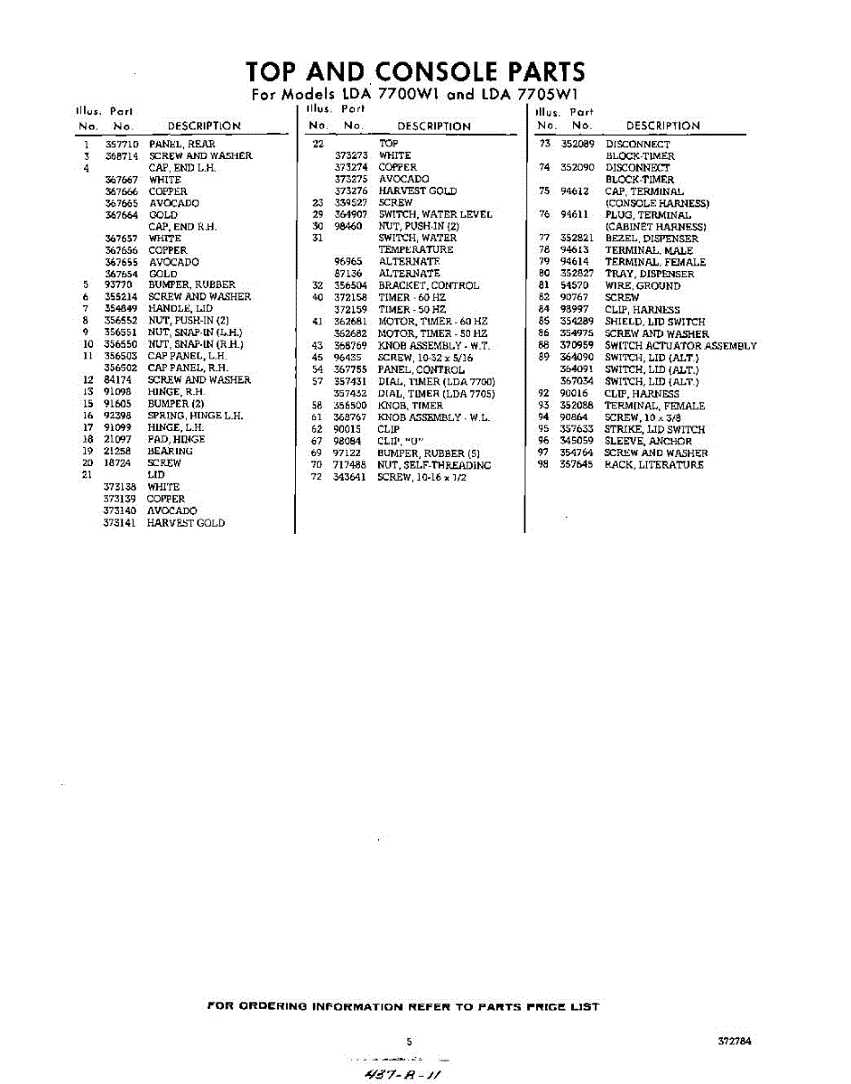 Parts for Whirlpool LDA7700W1: 05 - Section Parts
