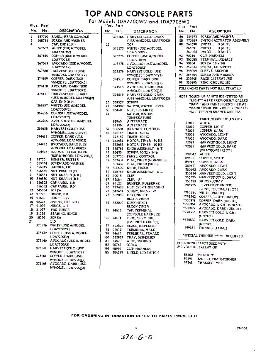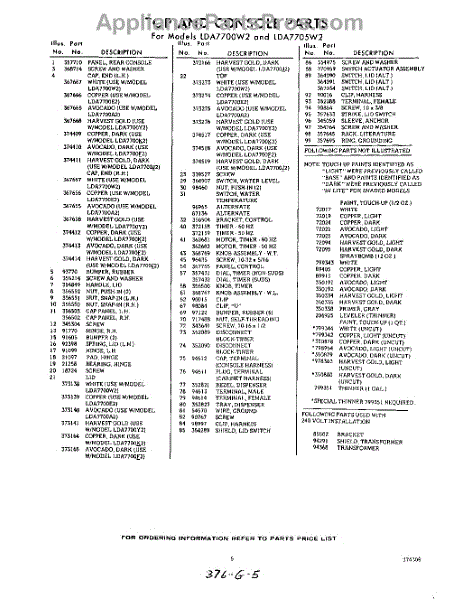 Parts for Whirlpool LDA7700W2: 05 - Section Parts