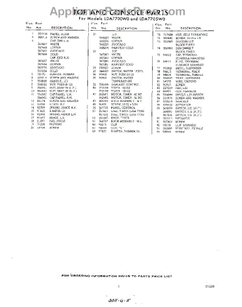 Parts for Whirlpool LDA7705W0: 05 - Section Parts