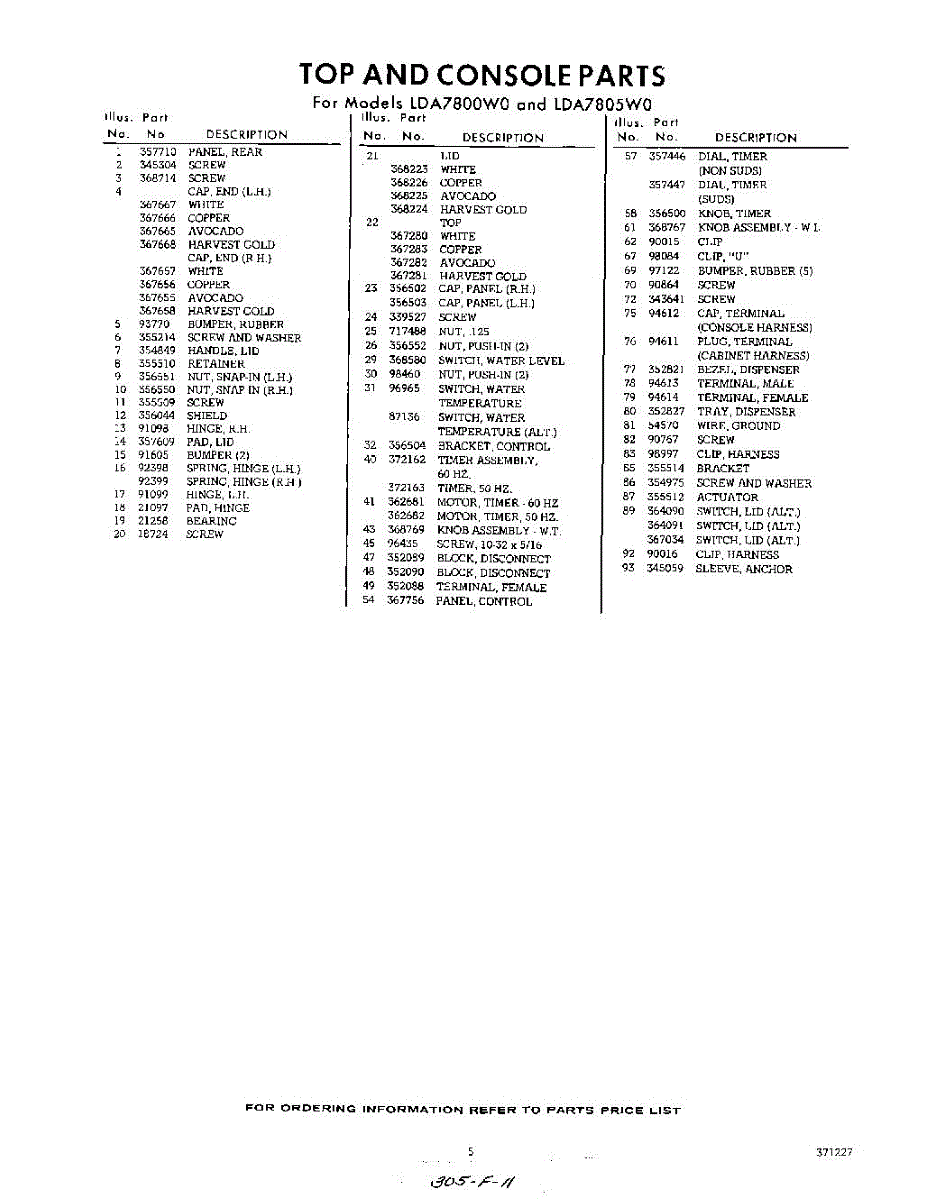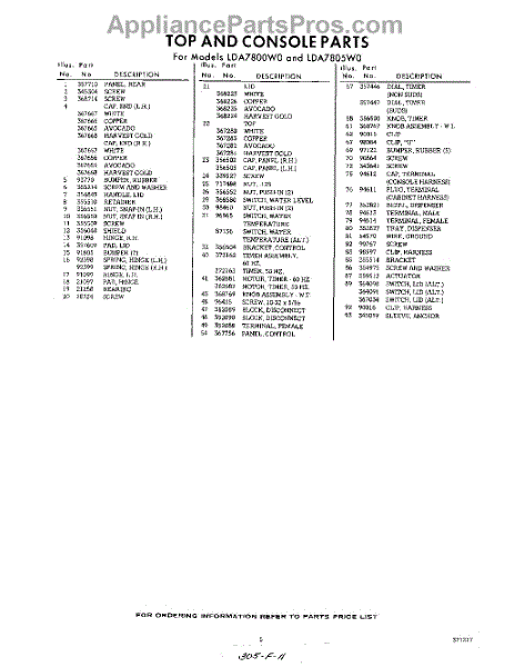 Parts for Whirlpool LDA7805W0: 05 - Section Parts