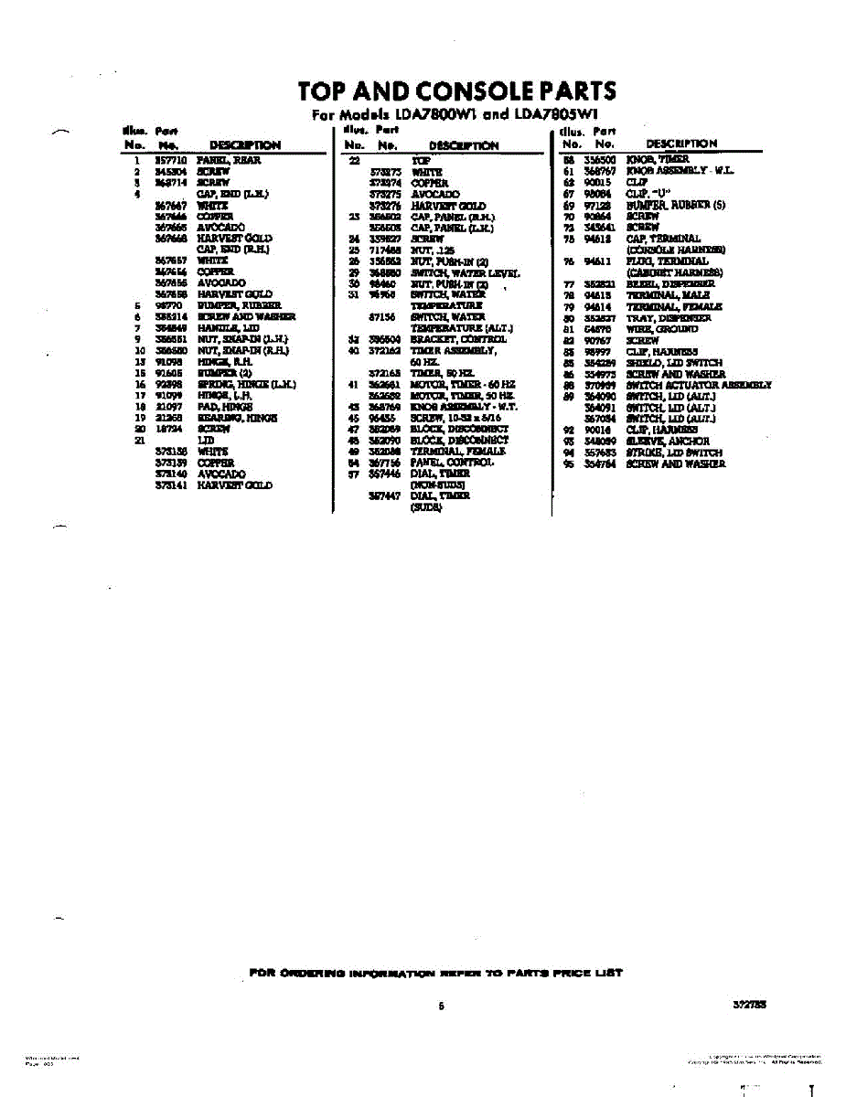 Parts for Whirlpool LDA7805W1: 05 - Section Parts