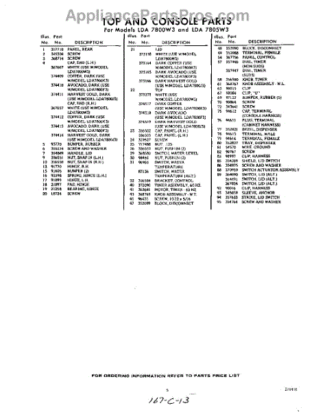 Parts for Whirlpool LDA7805W3: 05 - Section Parts