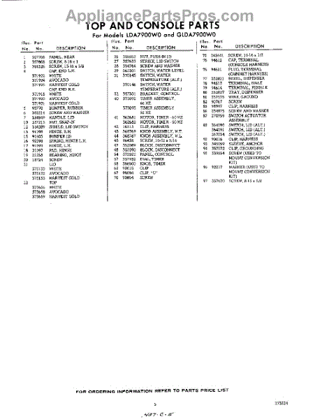 Parts for Whirlpool LDA7900W0: 05 - Section Parts