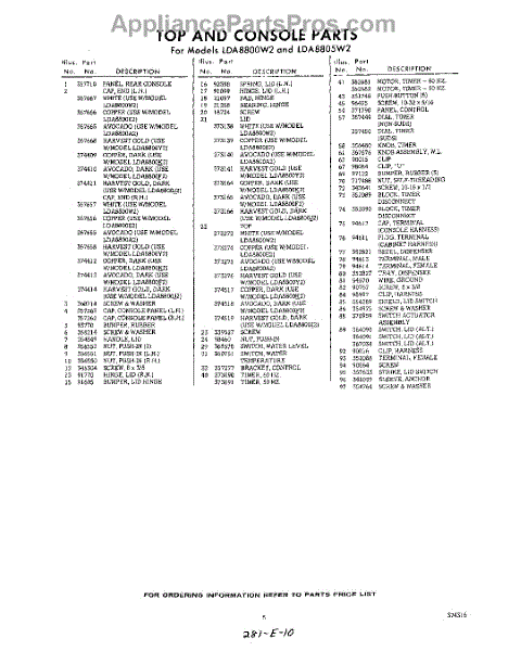 Parts for Whirlpool LDA8800W2: 05 - Section Parts