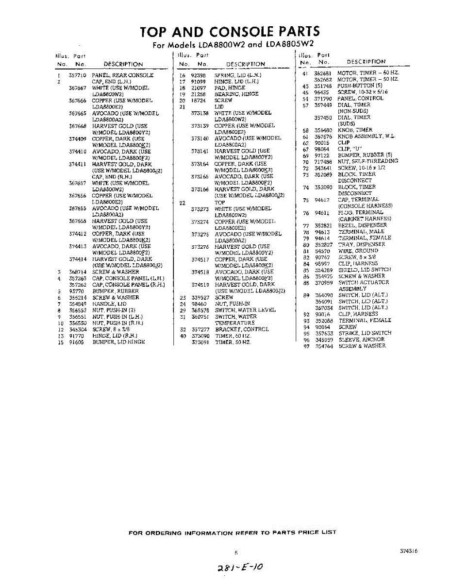 Parts for Whirlpool LDA8805W2: 05 - Section Parts