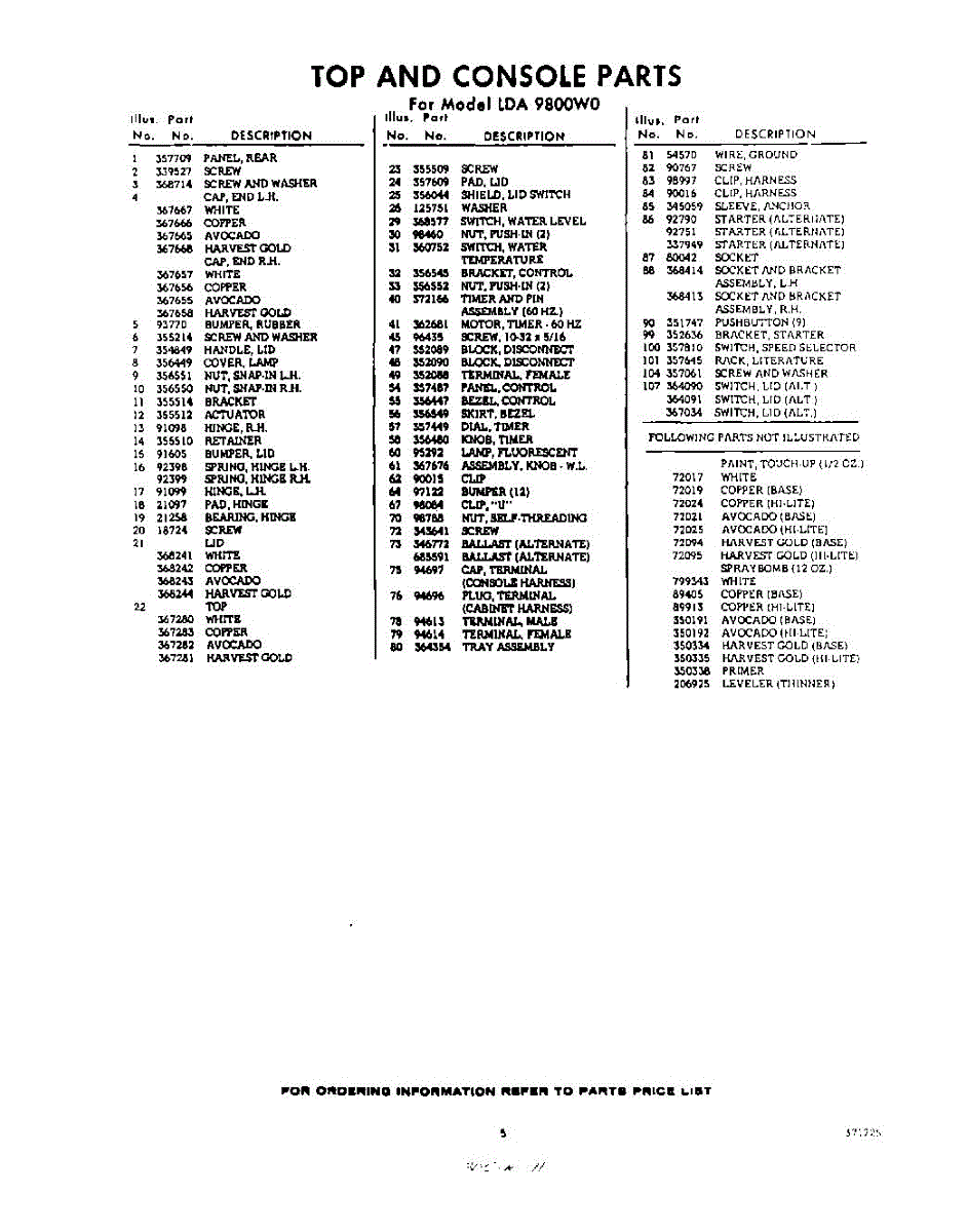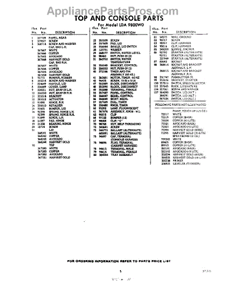Parts for Whirlpool LDA9800W0: 05 - Section Parts