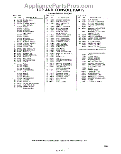 Parts for Whirlpool LDA9800W1: 05 - Section Parts