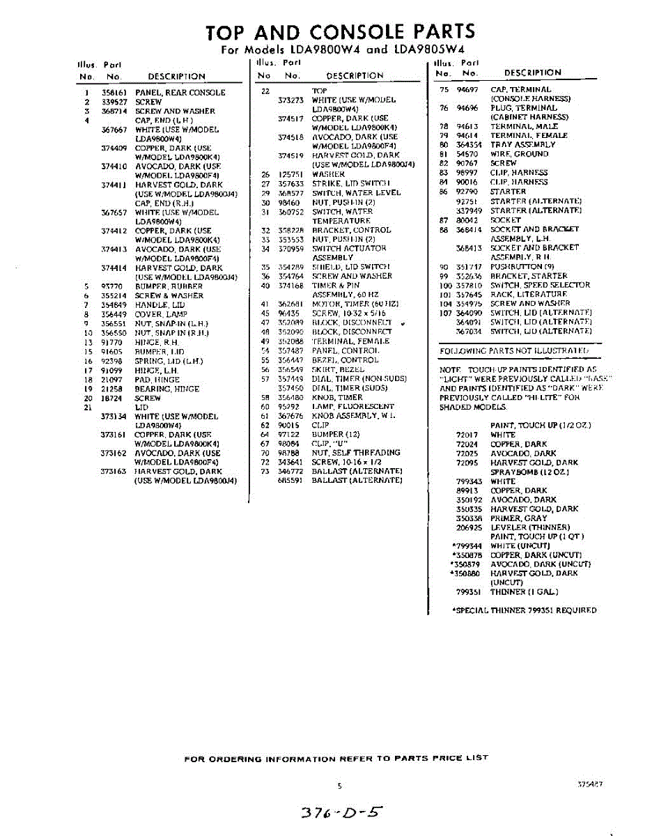 Parts for Whirlpool LDA9805W4: 05 - Section Parts