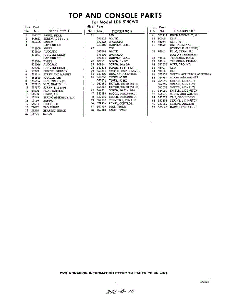 Parts for Whirlpool LDB5150W0: 05 - Section Parts