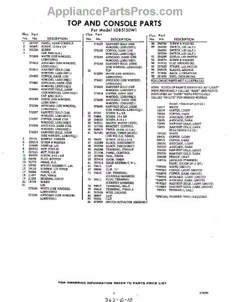 Parts for Whirlpool LDB5150W1: 05 - Section Parts