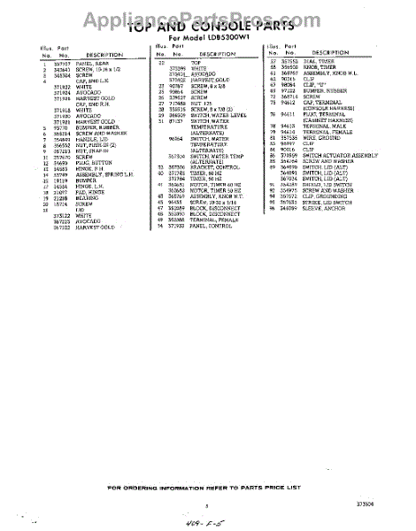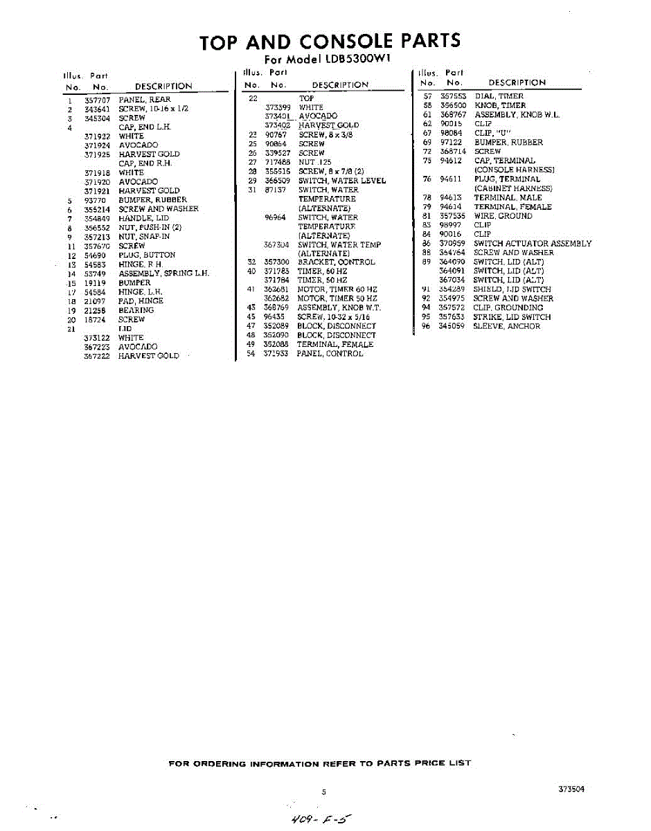 Parts for Whirlpool LDB5300W1: 05 - Section Parts