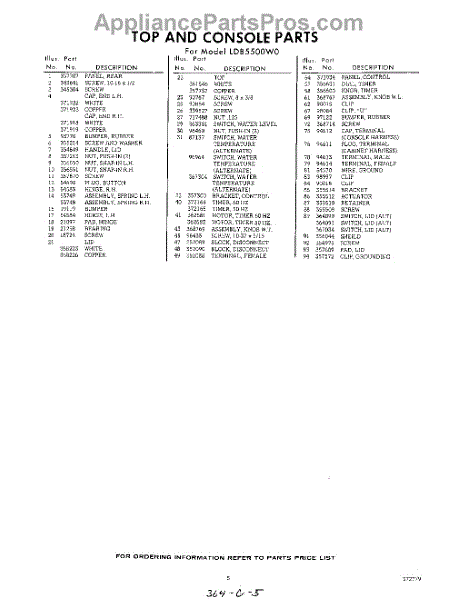Parts for Whirlpool LDB5500W0: 05 - Section Parts