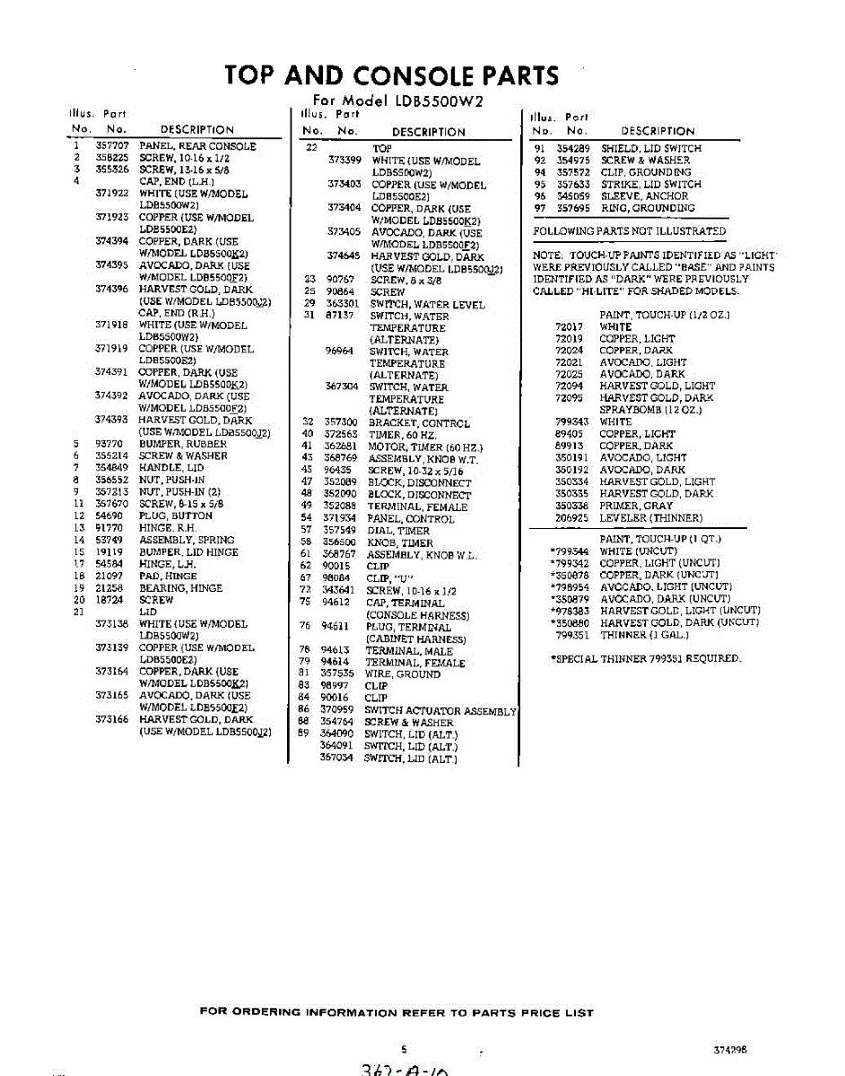 Parts for Whirlpool LDB5500W2: 05 - Section Parts