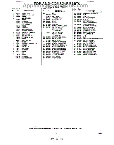 Parts for Whirlpool LDB7750W1: 05 - Section Parts