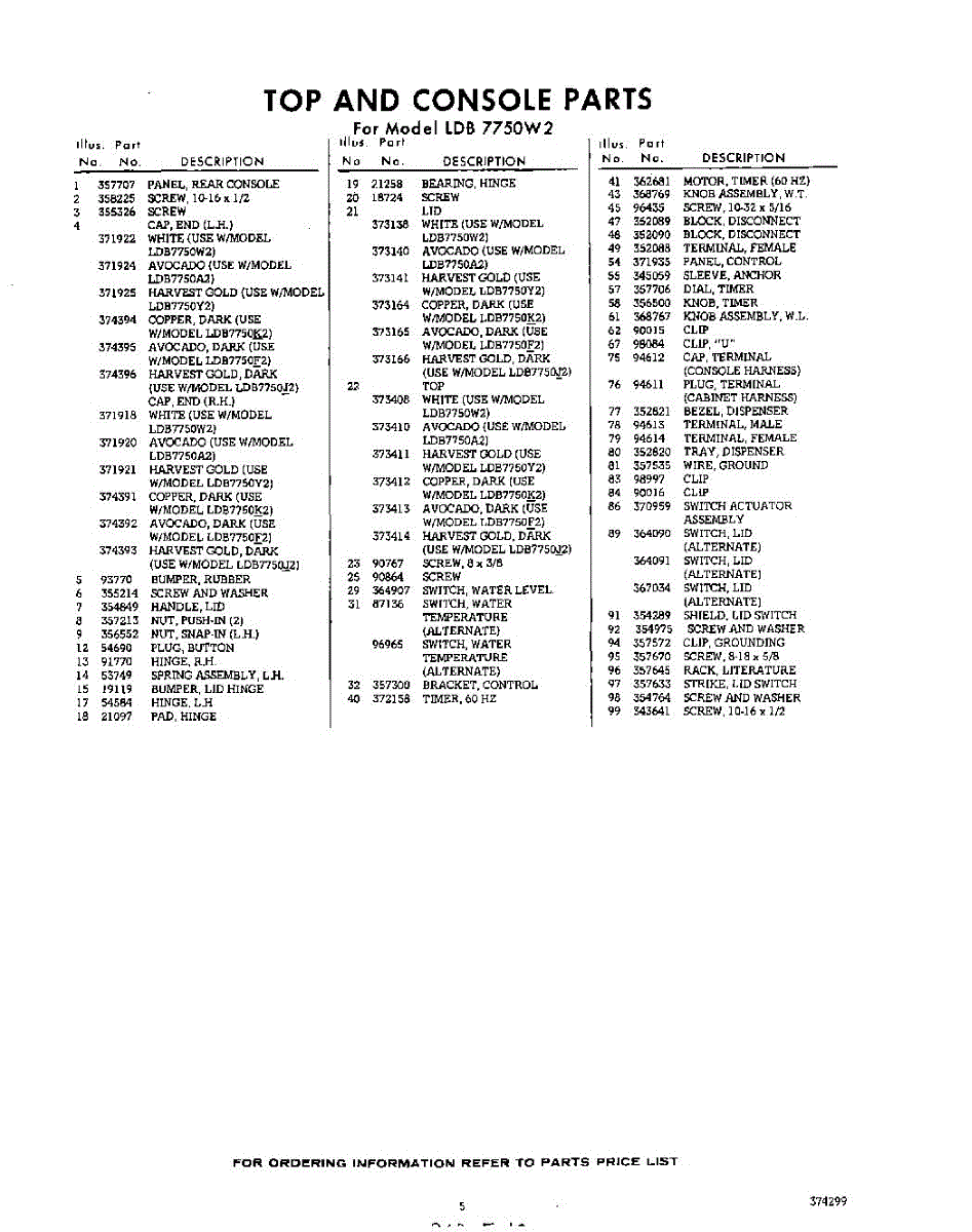 Parts for Whirlpool LDB7750W2: 05 - Section Parts