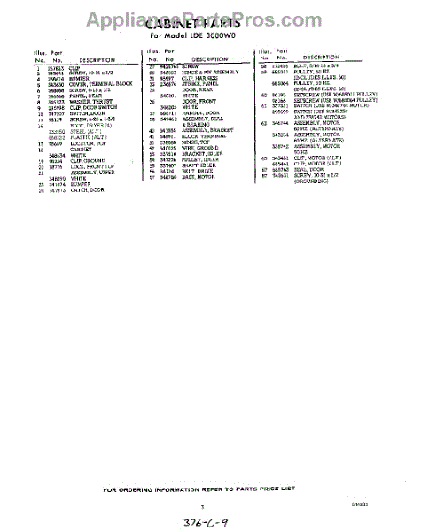 Parts for Whirlpool LDE3000W0: 03 - Section Parts