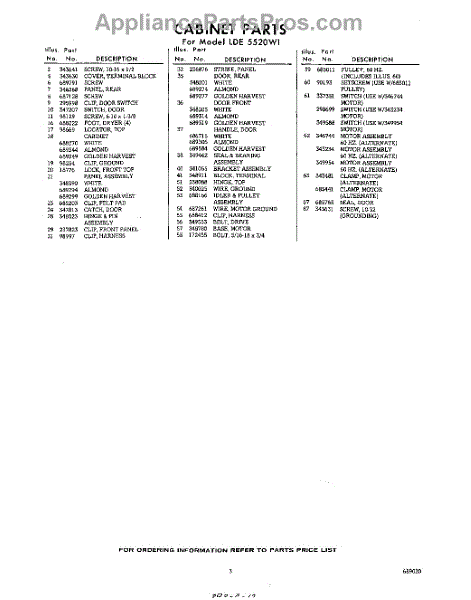 Parts for Whirlpool LDE5520W1: 03 - Section Parts