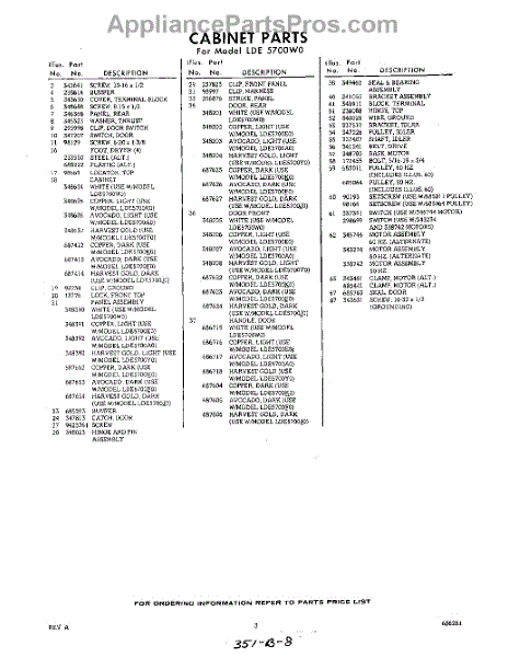 Parts for Whirlpool LDE5700W0: 03 - Section Parts
