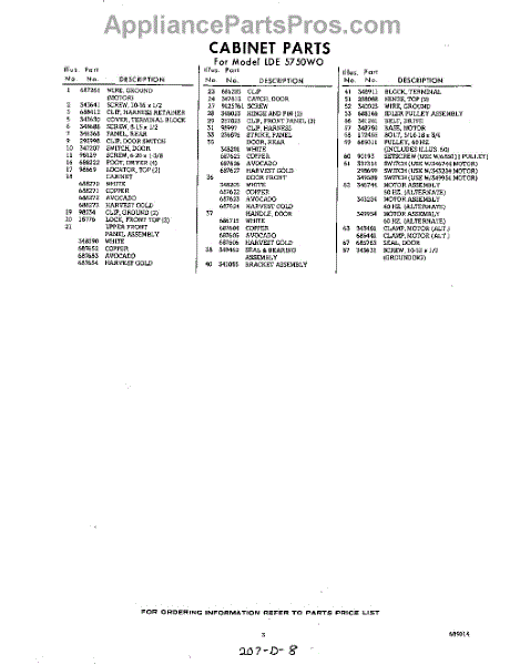 Parts for Whirlpool LDE5750W0: 03 - Section Parts