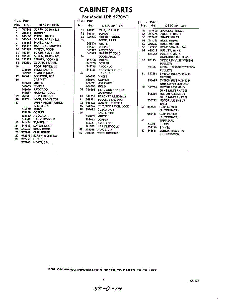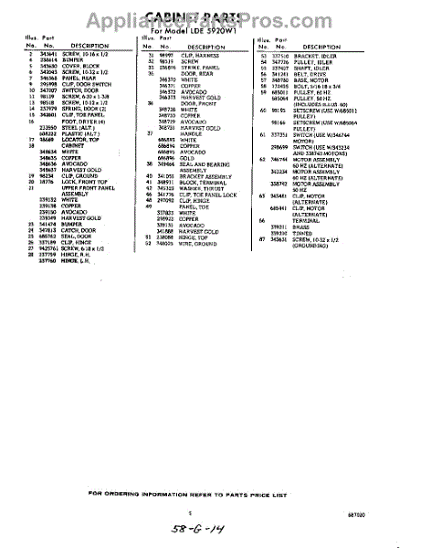 Parts for Whirlpool LDE5920W1: 05 - Section Parts