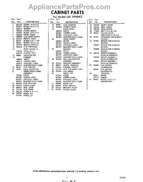 Parts for Whirlpool LDE5920W2: 05 - Section Parts