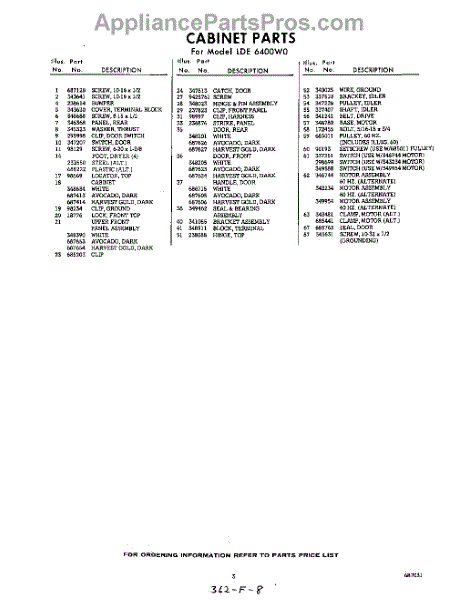 Parts for Whirlpool LDE6400W0: 03 - Section Parts