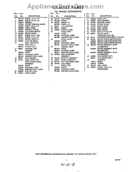 Parts for Whirlpool LDE6600W0: 03 - Section Parts