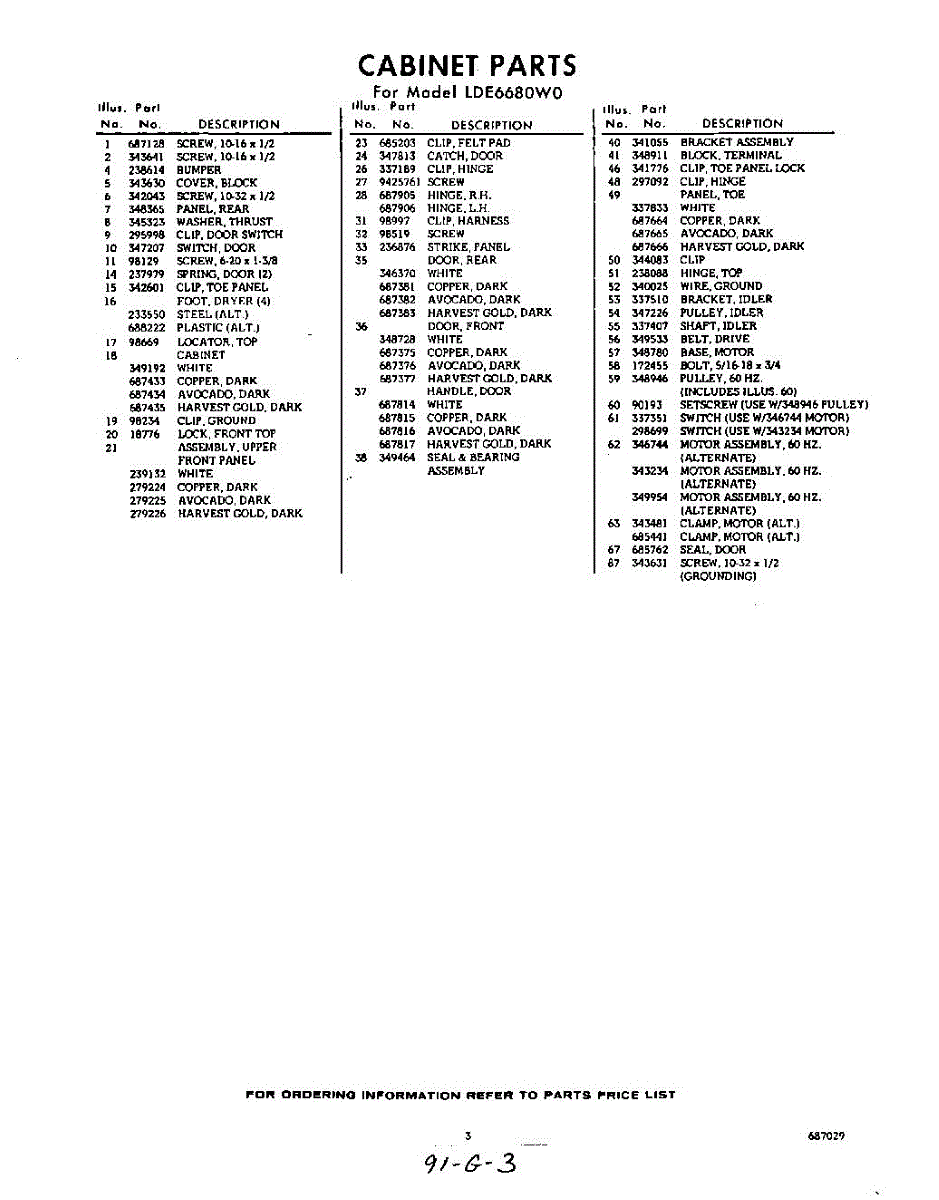 Parts for Whirlpool LDE6680W0: 03 - Section Parts