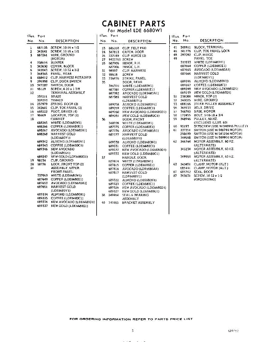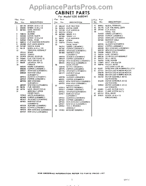 Parts for Whirlpool LDE6680W1: 03 - Section Parts