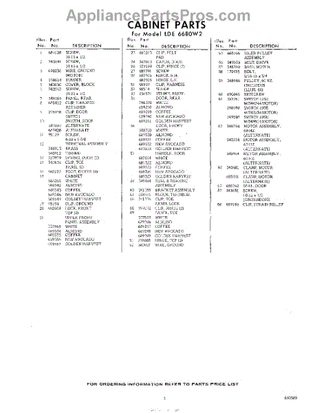 Parts for Whirlpool LDE6680W2: 03 - Section Parts