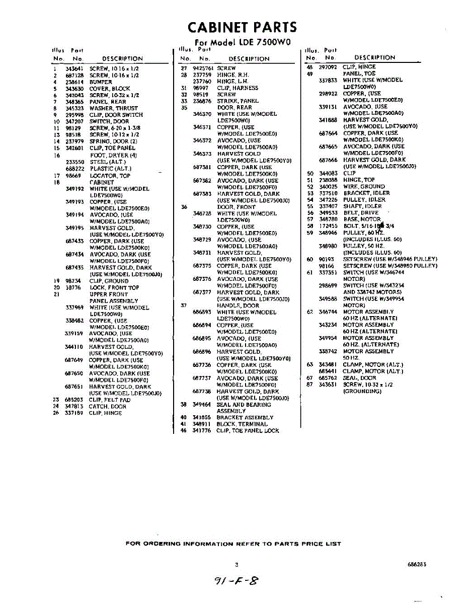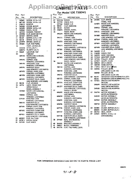 Parts for Whirlpool LDE7500W0: 03 - Section Parts