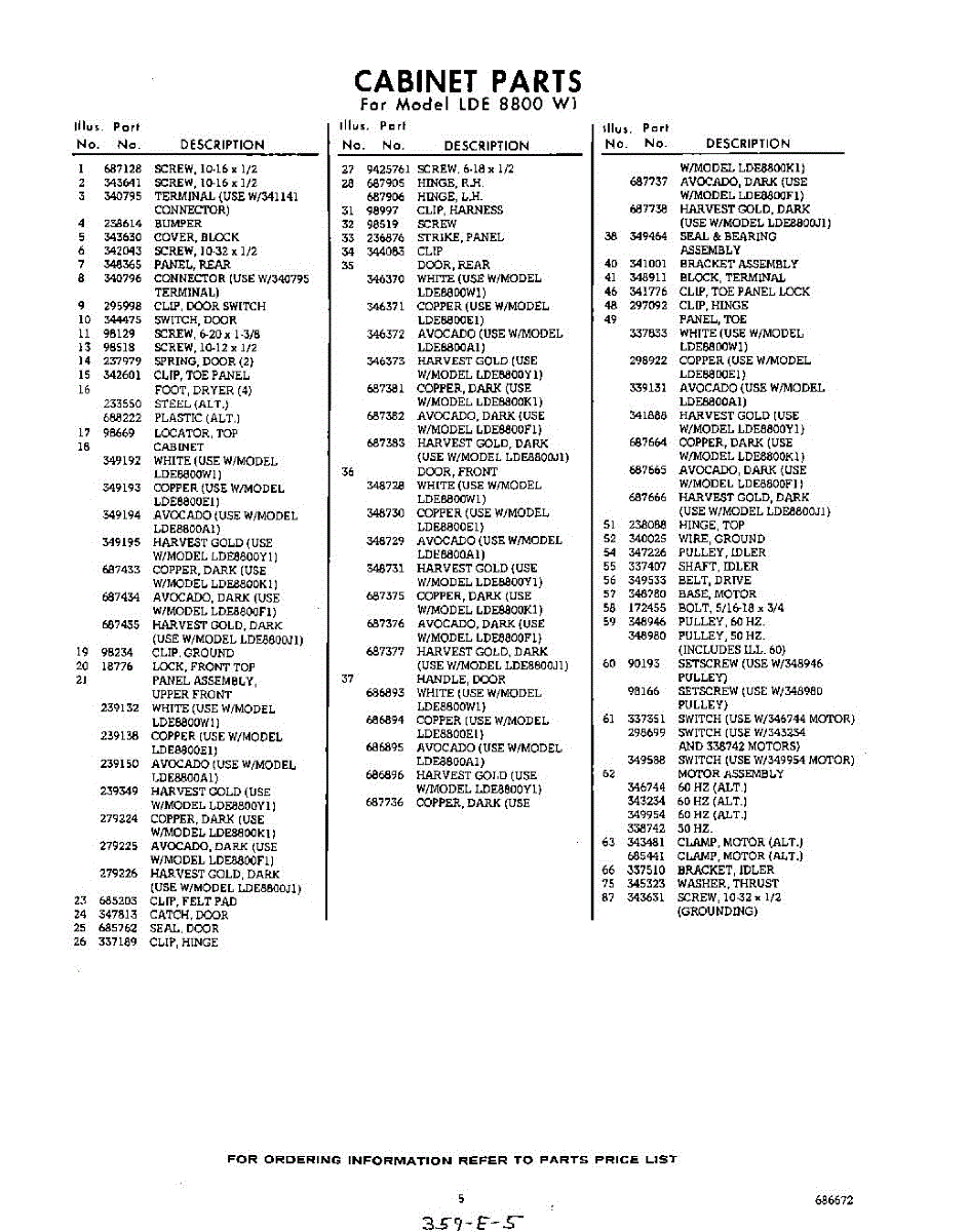 Parts for Whirlpool LDE8800W1: 05 - Section Parts