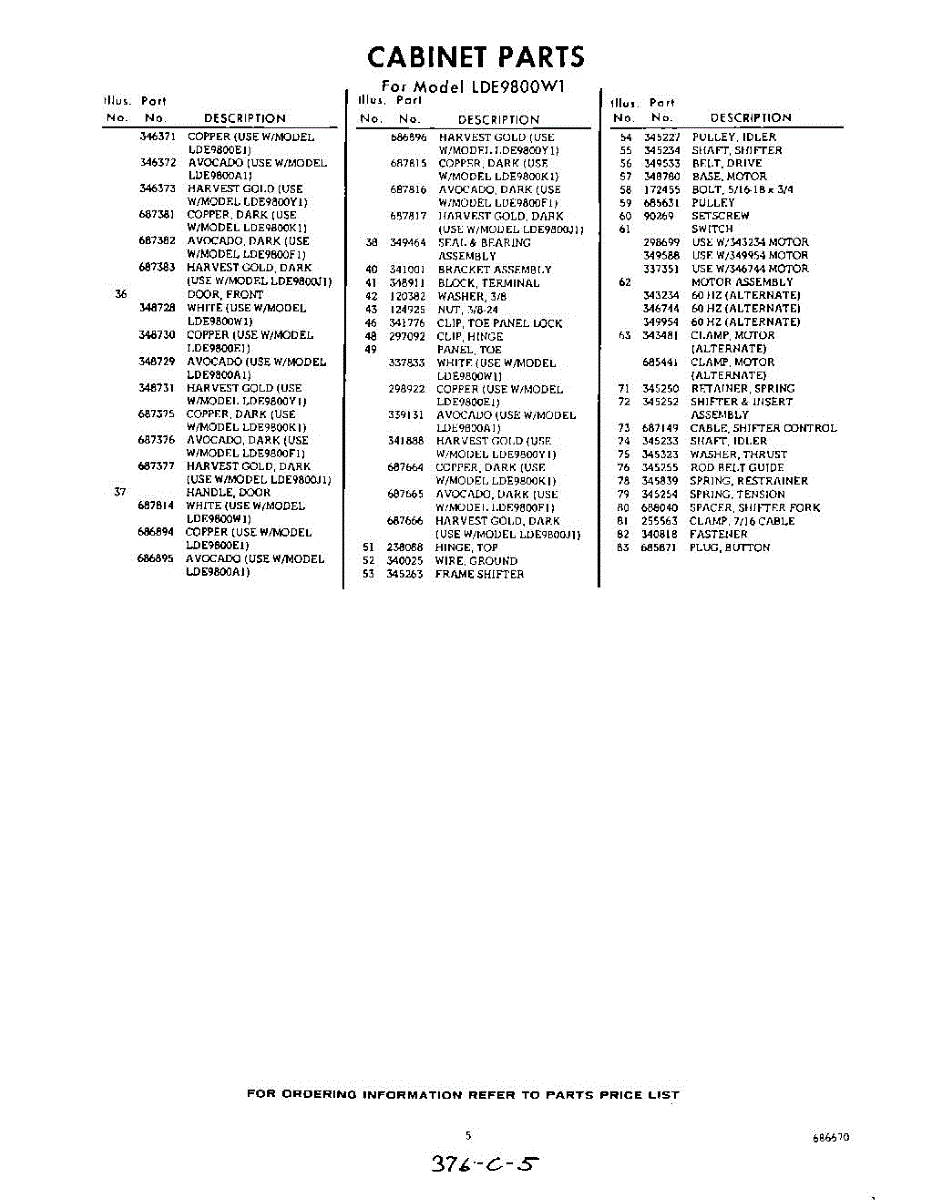 Parts for Whirlpool LDE9800W1: 05 - Section Parts